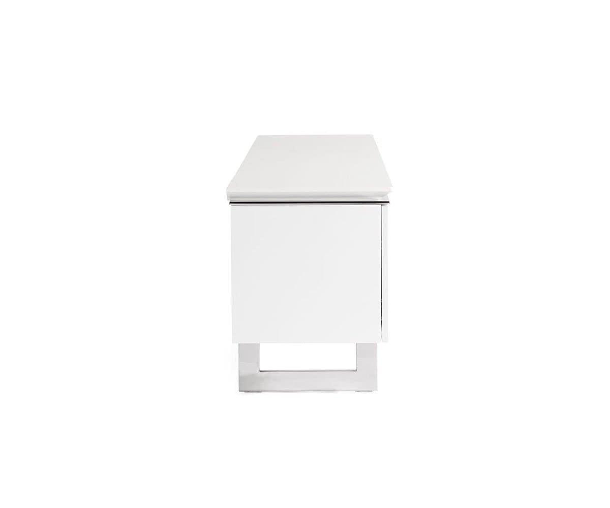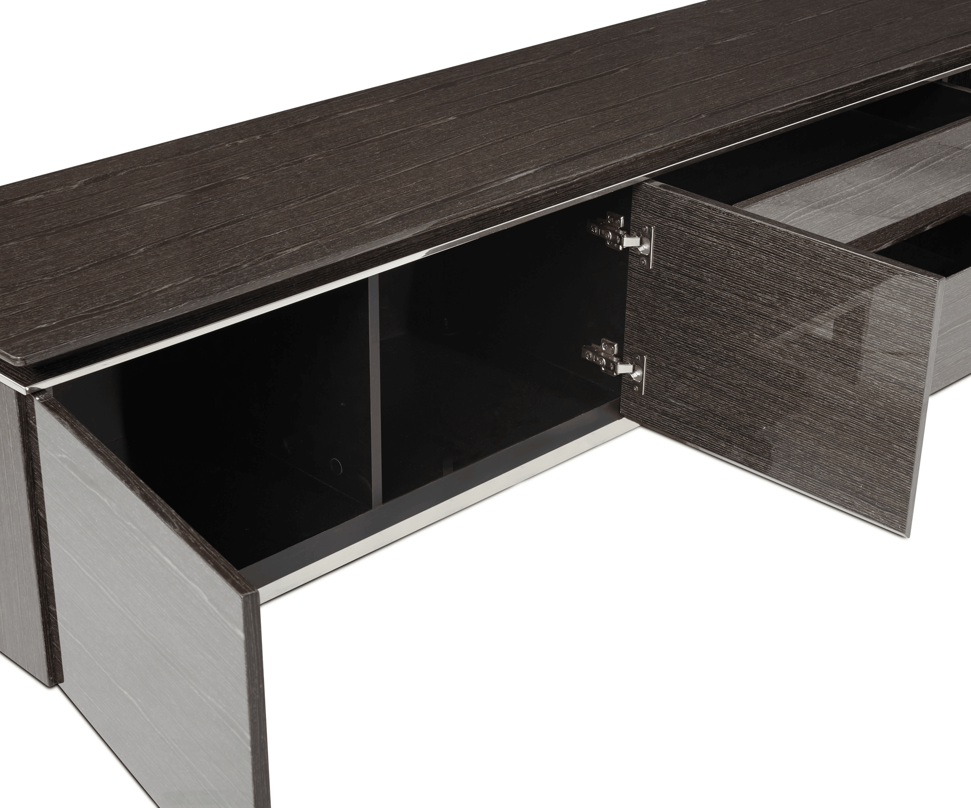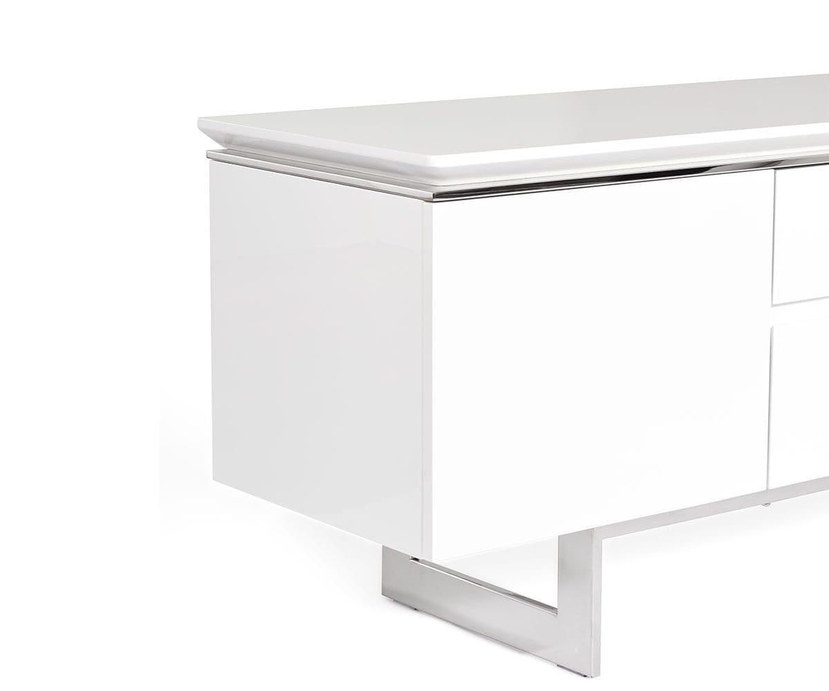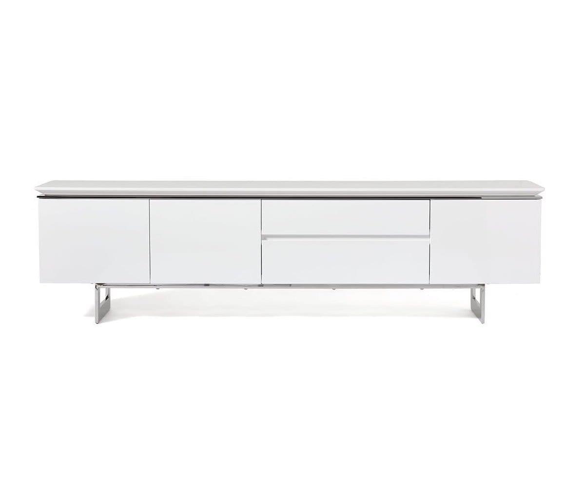 Le meuble multimédia Sieva, élégant et sophistiqué, offre un espace de rangement généreux. Sous tous les angles, ce meuble capte l'attention par ses lignes épurées, notamment son plateau biseauté intrigant et son piètement en acier inoxydable. Son motif bois saisissant est sublimé par une finition brillante contemporaine, qui lui permet de rayonner où que vous le placiez. Doté de trois portes qui s'ouvrent sur un grand espace de rangement et de deux tiroirs spacieux, ce meuble multimédia est conçu pour offrir un espace de rangement élégant pour tous vos appareils multimédias ou votre salon.