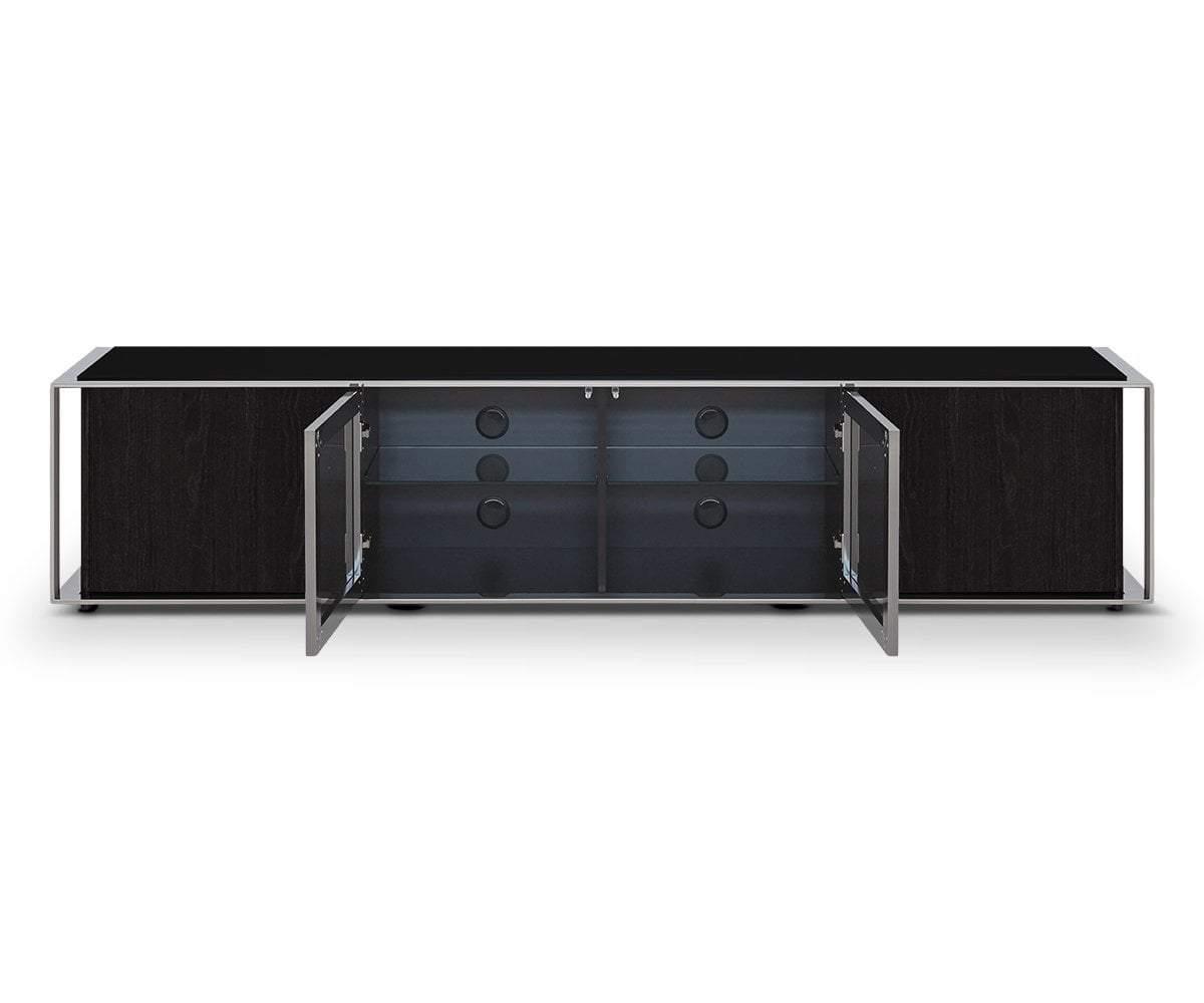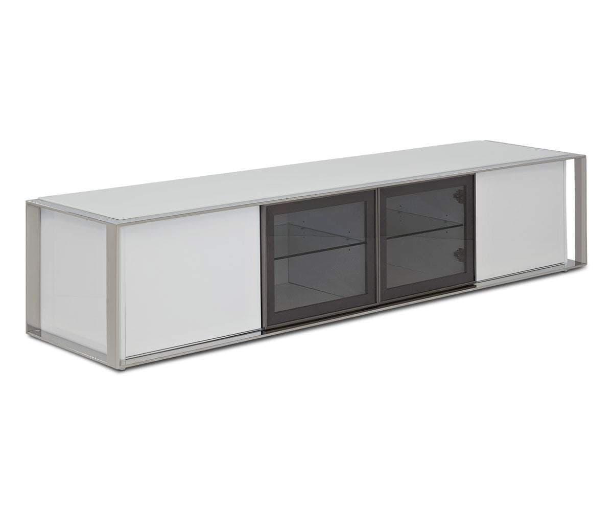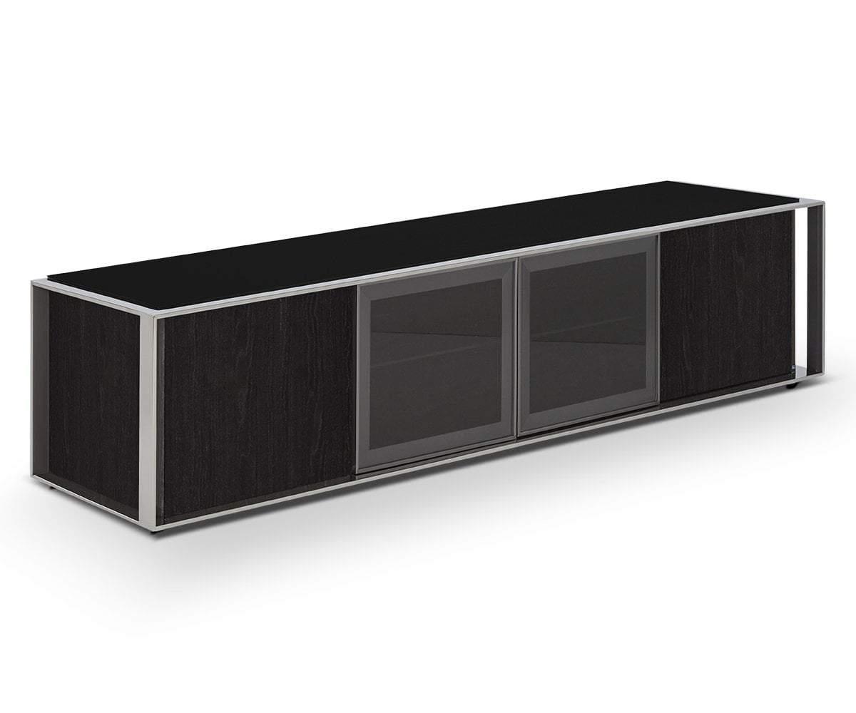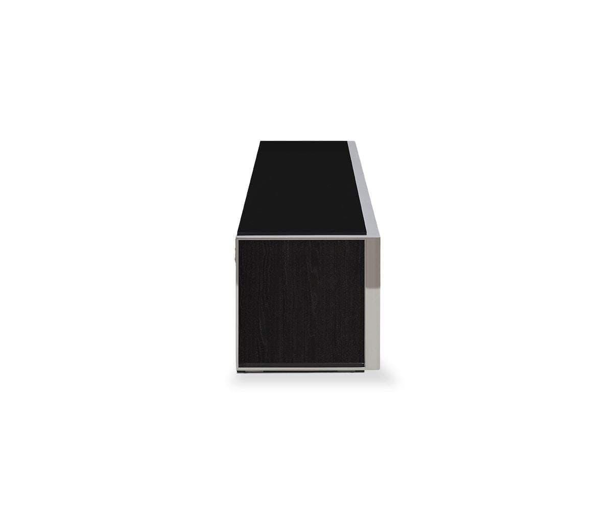 L'utilisation du bois et du verre fumé dans le meuble multimédia Svante crée un contraste visuel attrayant, soulignant l'élégance masculine de cet incontournable de votre espace divertissement. Discret, il ne sacrifie pas la capacité de rangement. Rangez votre matériel multimédia ou tout autre objet que vous souhaitez dissimuler derrière les deux portes situées à chaque extrémité, et exposez vos autres accessoires derrière les deux portes en verre teinté situées au centre.