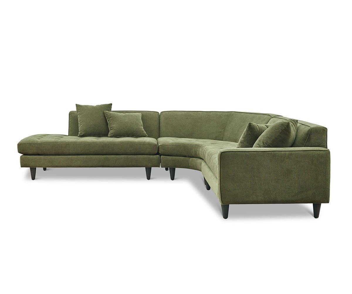 Élégant et raffiné, le canapé d'angle Ingrid se distingue par son revêtement moelleux qui enveloppe l'assise capitonnée, son dossier ajusté et son coin arrondi qui rehausse son allure élégante et moderne. Son style élégant est rehaussé par des pieds fuselés en bois et quatre coussins assortis, disponibles en deux tailles. Fabriqué aux États-Unis.