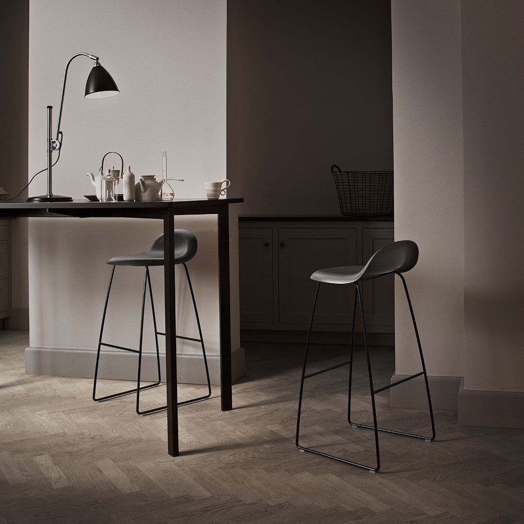 La série de chaises GUBI comprend une chaise d'appoint avec et sans accoudoirs, un tabouret de bar, une chaise longue et une série de tables en 3 hauteurs différentes.