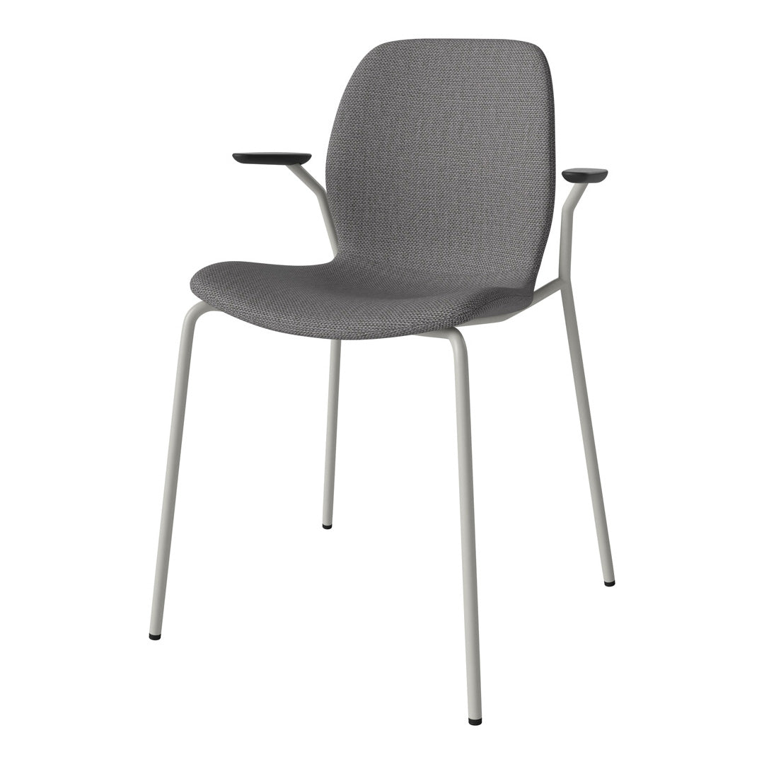 Chaise de salle à manger Seed avec accoudoirs ouverts - Rembourrée - Base en acier, laquée grise
