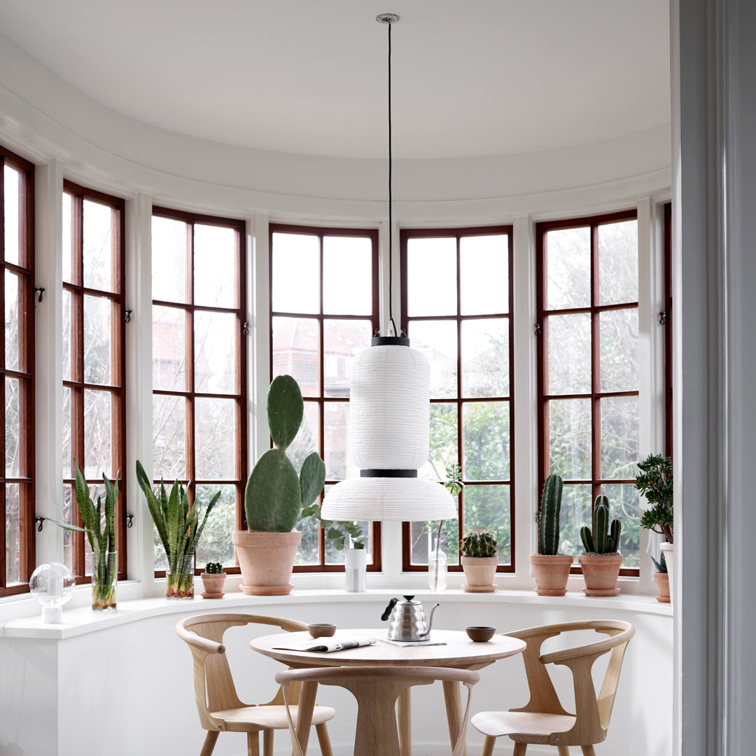 « Dans le style typique de Jaime Hayon, ces lanternes en papier bousculent les conventions », remarque Martin Kornbek Hansen, directeur de la marque &tradition. « On les retrouve dans une suspension ultra-légère en papier de riz, évoquant les anciennes lanternes d'Asie, réinventées dans une esthétique moderne. »
