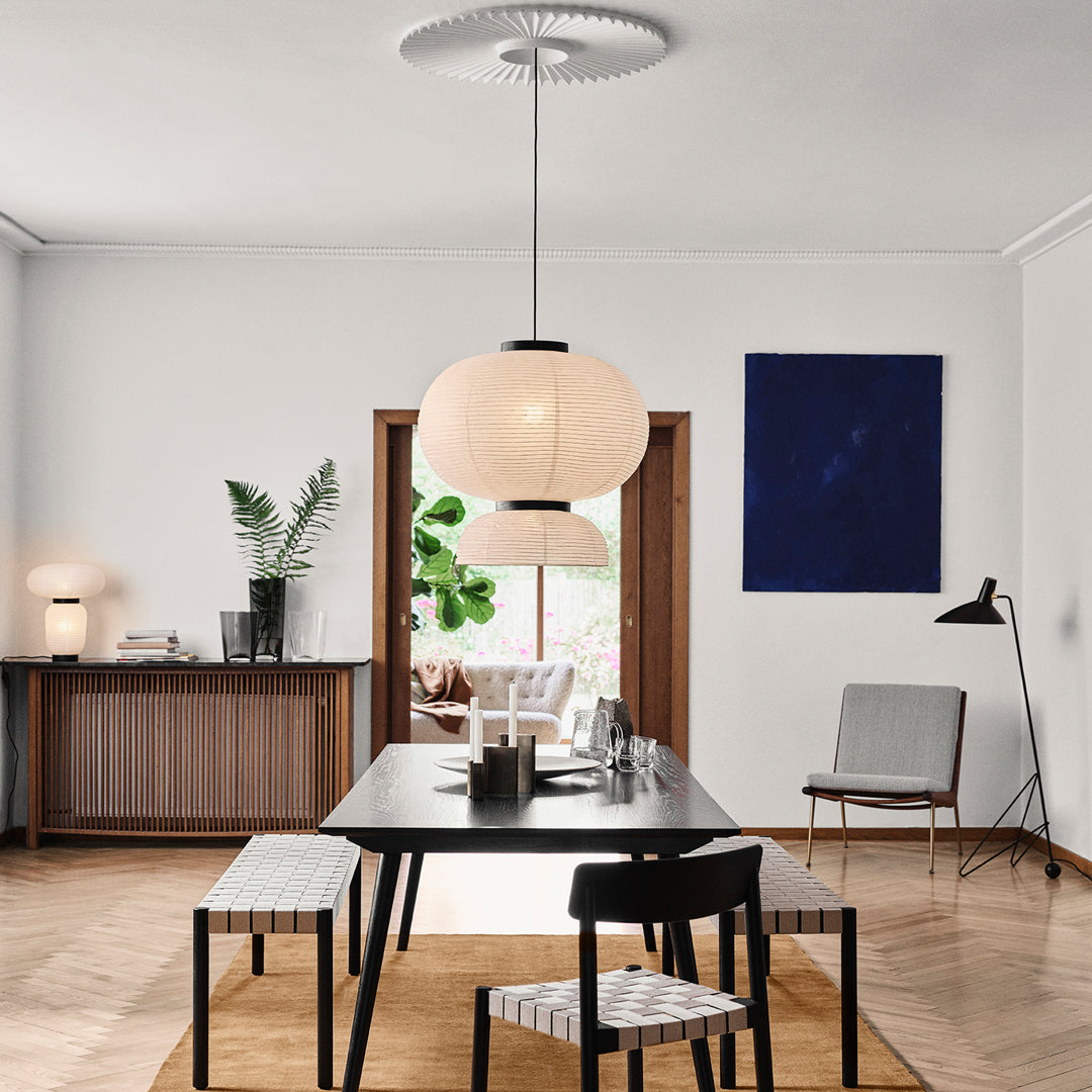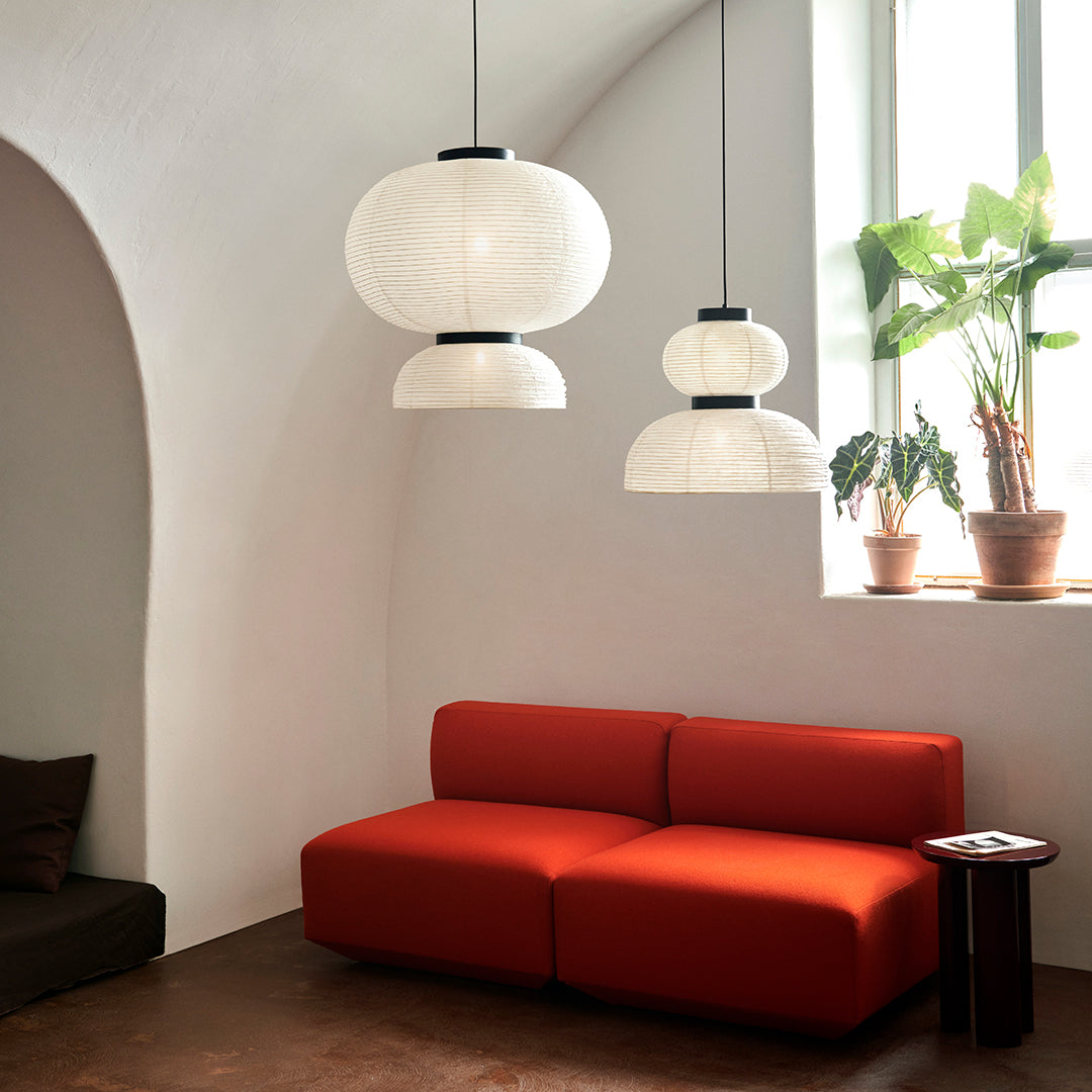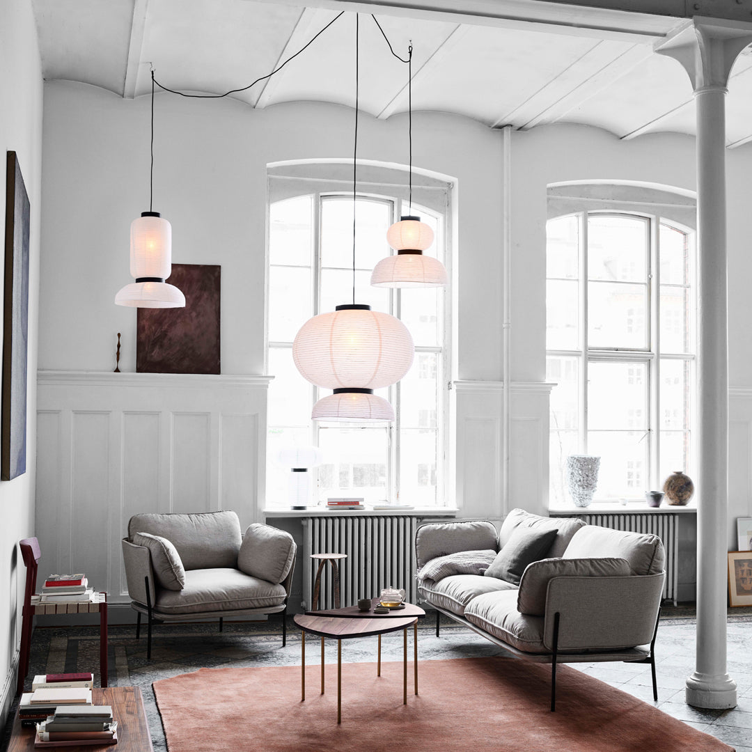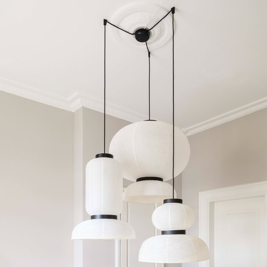 « Dans le style typique de Jaime Hayon, ces lanternes en papier bousculent les conventions », remarque Martin Kornbek Hansen, directeur de la marque &tradition. « On les retrouve dans une suspension ultra-légère en papier de riz, évoquant les anciennes lanternes d'Asie, réinventées dans une esthétique moderne. »