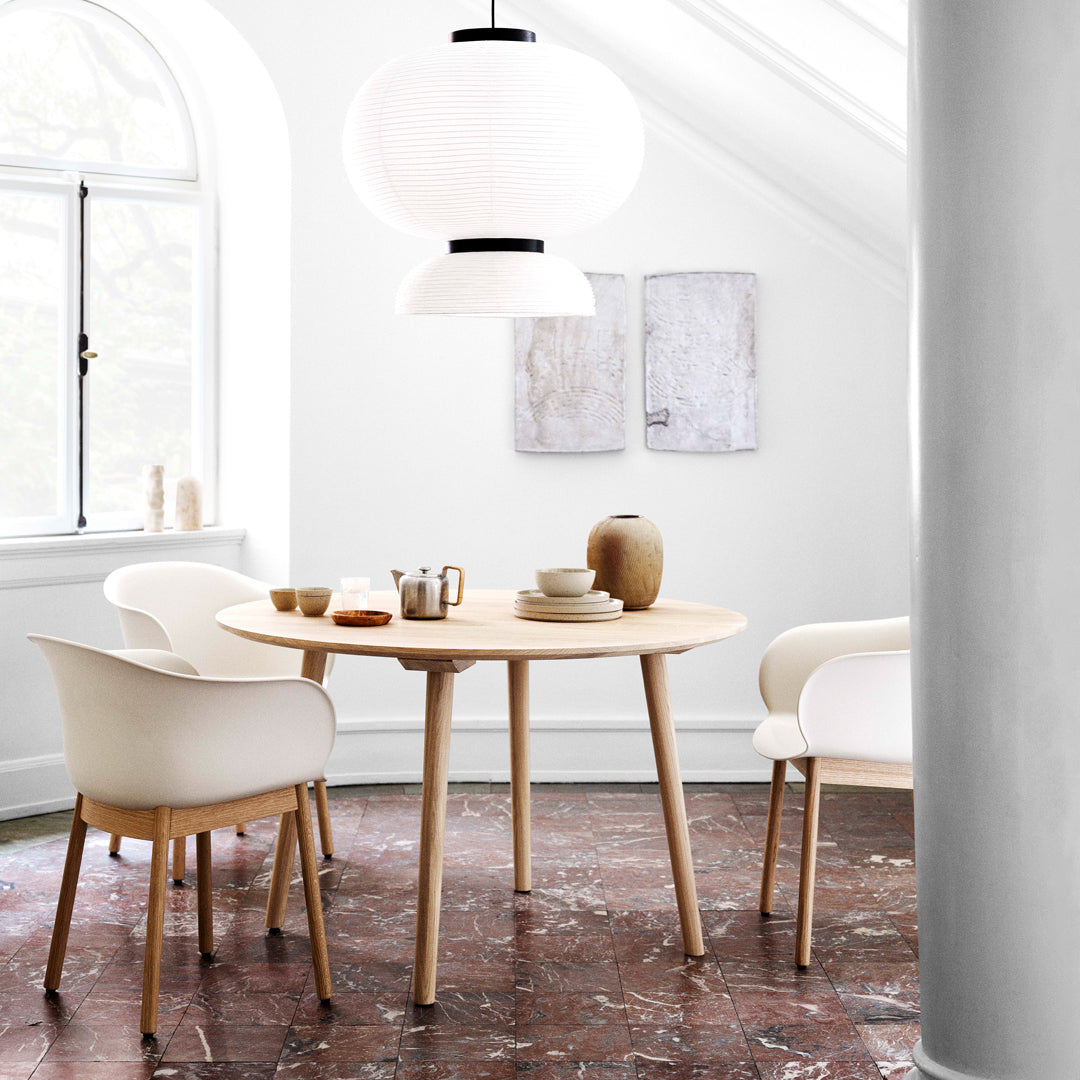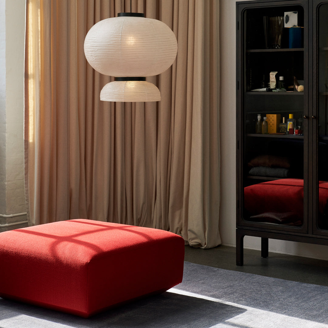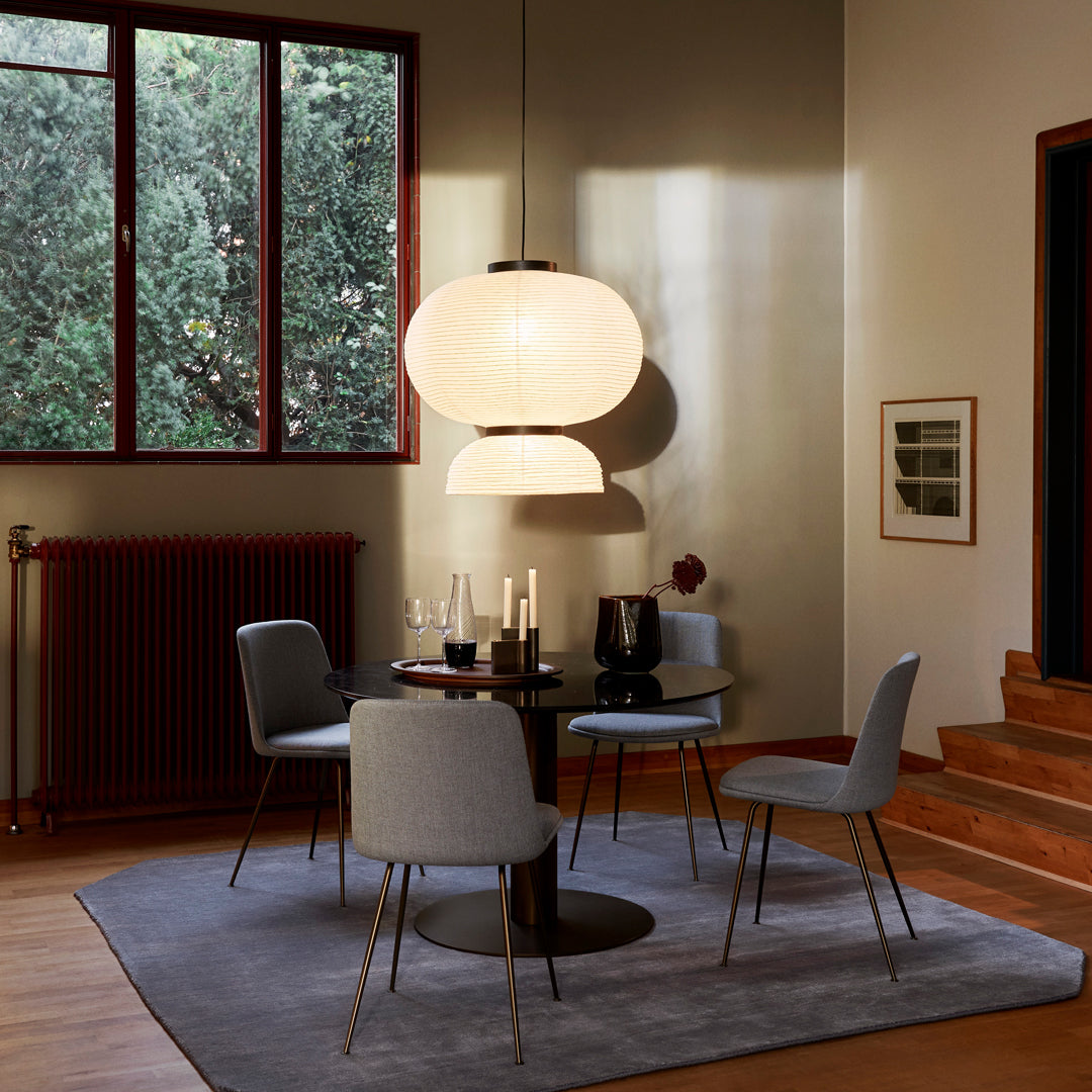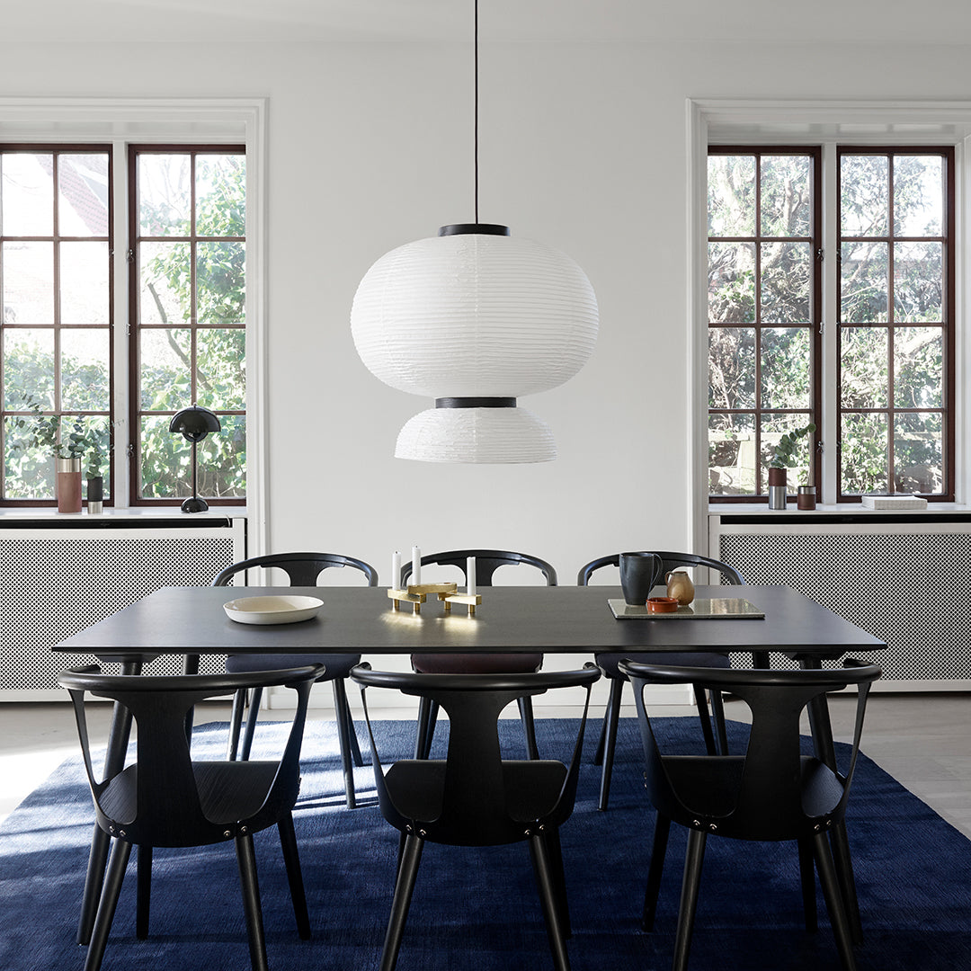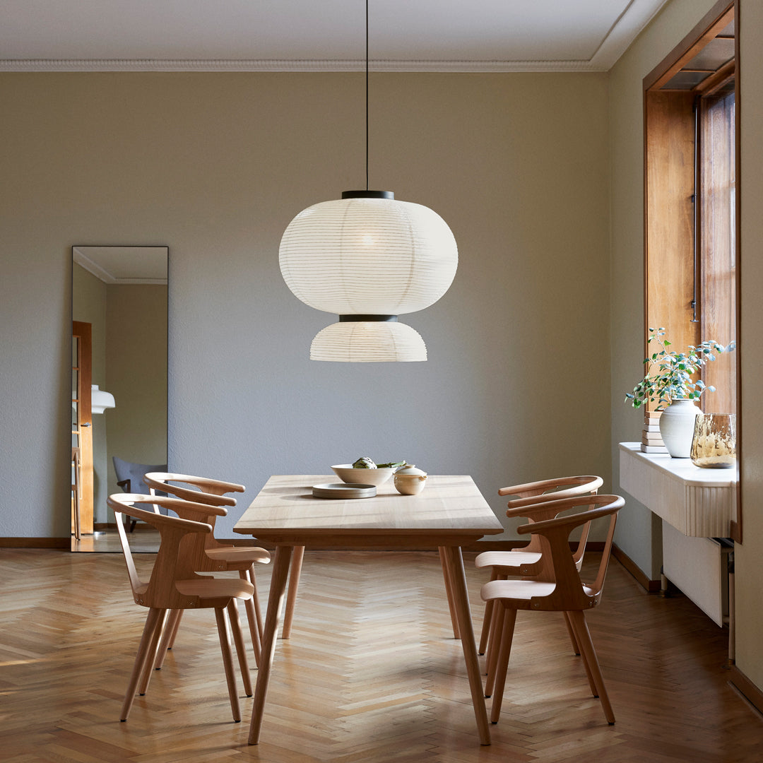« Dans le style typique de Jaime Hayon, ces lanternes en papier bousculent les conventions », remarque Martin Kornbek Hansen, directeur de la marque &tradition. « On les retrouve dans une suspension ultra-légère en papier de riz, évoquant les anciennes lanternes d'Asie, réinventées dans une esthétique moderne. »