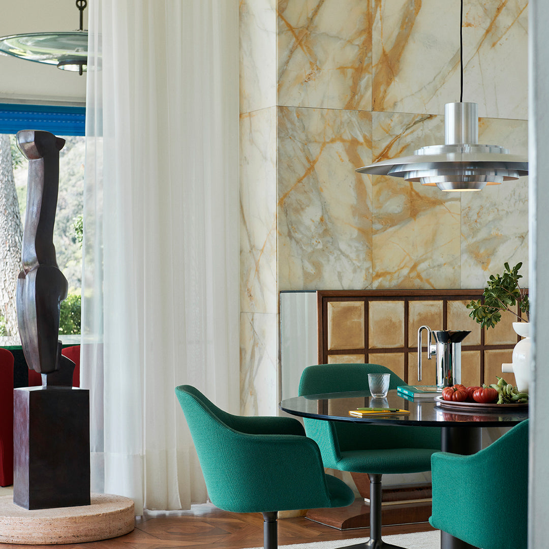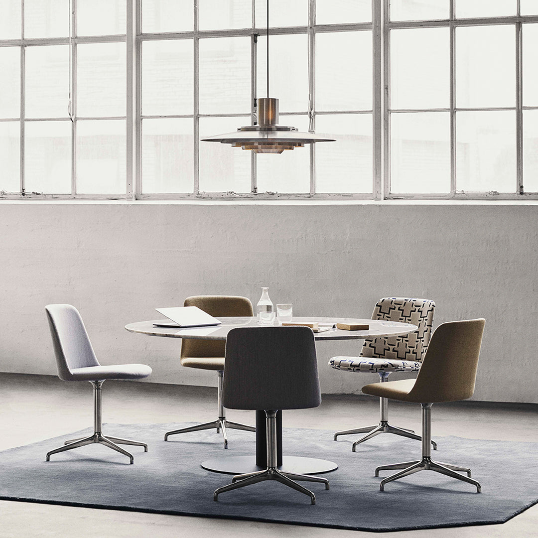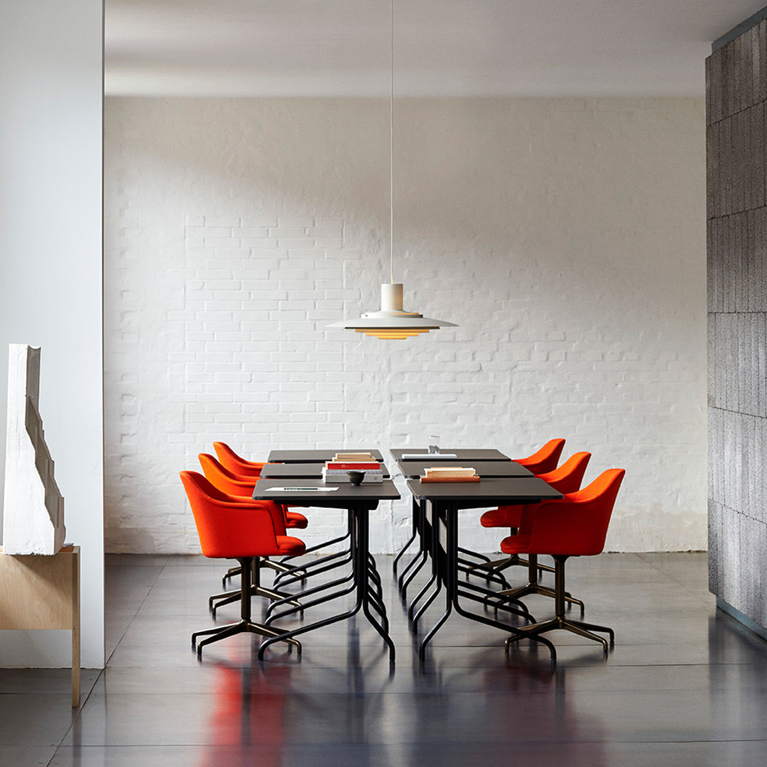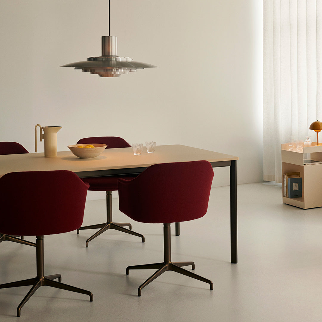 Kastholm & Fabricius étaient des architectes danois dont le travail a influencé l'esthétique emblématique du modernisme danois. Kastholm a combiné son expérience de forgeron avec celle de Fabricus, ébéniste de formation, pour créer des pièces sculpturales originales qui séduisent un public international. La nouvelle version de la suspension P376 de &Tradition rend hommage à son design original de 1963, avec ses cinq abat-jour concentriques discrètement placés en dessous, qui s'incurvent doucement vers le centre pour diffuser une lumière douce et diffuse. Disponible en aluminium pur ou en blanc, et en deux tailles : KF1 (47,5 cm de diamètre) et KF2 (70 cm de diamètre). Profitez d'un style à la fois classique et résolument contemporain. Élégant et sophistiqué, il évoque l'architecture.