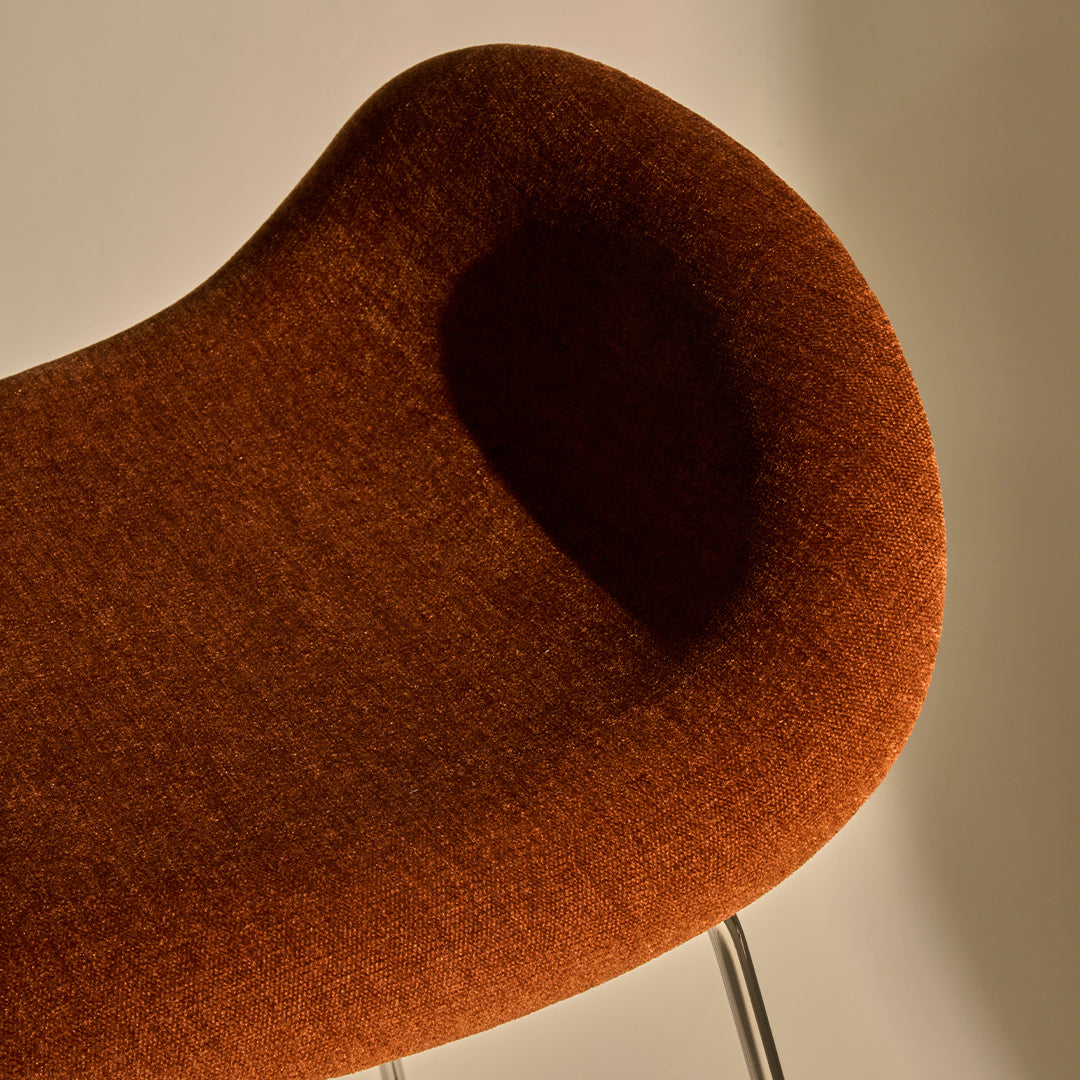 Disponible avec coque en bois ou HiRek, non rembourrée, avec revêtement frontal ou entièrement rembourrée, hauteur bar, avec piètement noir ou chromé. Patins en plastique inclus, patins en feutre disponibles sur demande.