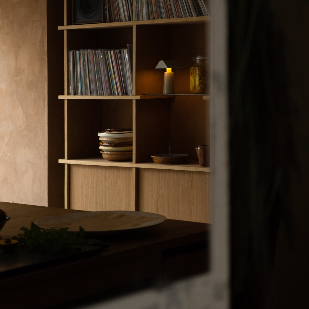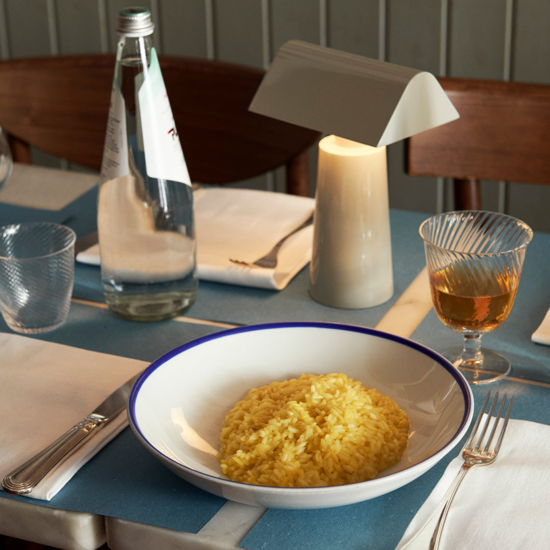 Solution pratique aux frontières de plus en plus floues entre travail et maison, la lampe portable Caret revisite les silhouettes linéaires des lampes classiques aux nuances vertes, appelées « lampes de banquier », que l'on trouvait dans les bibliothèques historiques. Entièrement en acier laqué, elle présente une base arrondie et un long sommet pyramidal qui diffuse une lumière douce et diffuse. Elle est disponible en deux coloris contemporains : bordeaux foncé et gris soie.