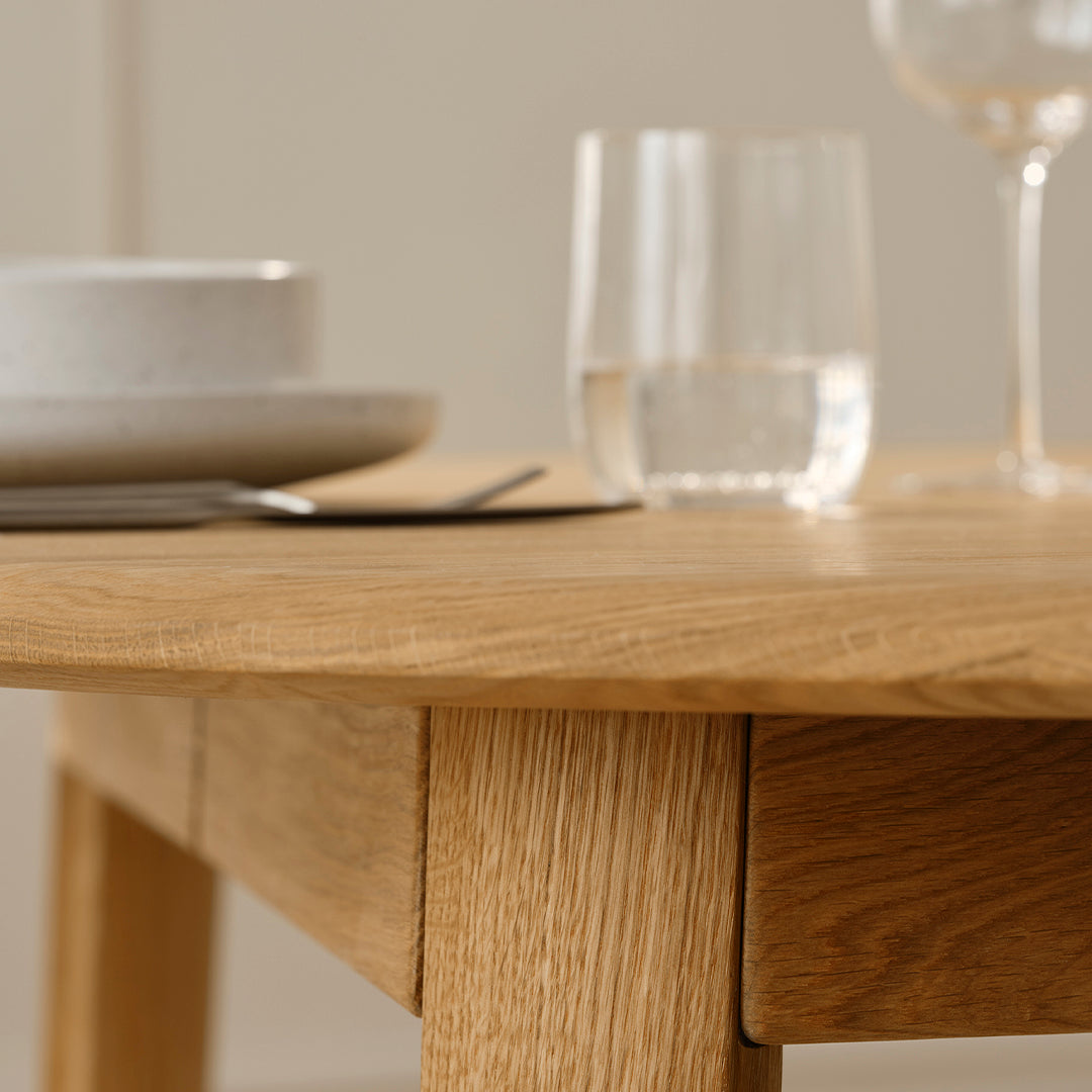 Un design intemporel allié à l'artisanat du bois massif. C'est l'histoire de la série de tables à manger Palo, fabriquées en chêne massif certifié FSC® et ornées de détails raffinés. Disponibles en version fixe ou extensible, les plateaux présentent des planches élégamment disposées qui s'harmonisent parfaitement avec de nombreux intérieurs. Les courbes douces et continues des pieds et des bords ajoutent une touche de raffinement, tandis que la construction robuste garantit une longue durée de vie. Parfaites pour tous les repas, qu'il s'agisse d'une petite réunion décontractée entre amis ou d'un grand dîner en famille.