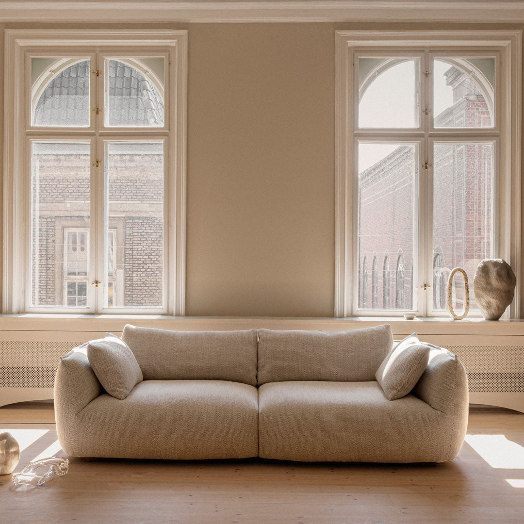 Avec sa silhouette basse et ses lignes aux contours doux, le canapé Ridge vous invite à vous y enfoncer. Un seul bord de bride courant le long du dessus attire le regard, formant une crête subtile qui définit le contour et donne son nom au canapé.