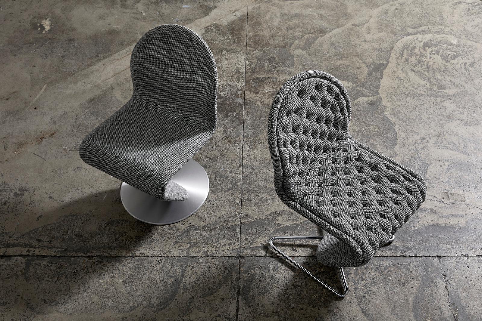 Chaise de salle à manger pivotante en forme de S entièrement rembourrée sur une base papillon en aluminium brossé ou en acier chromé.