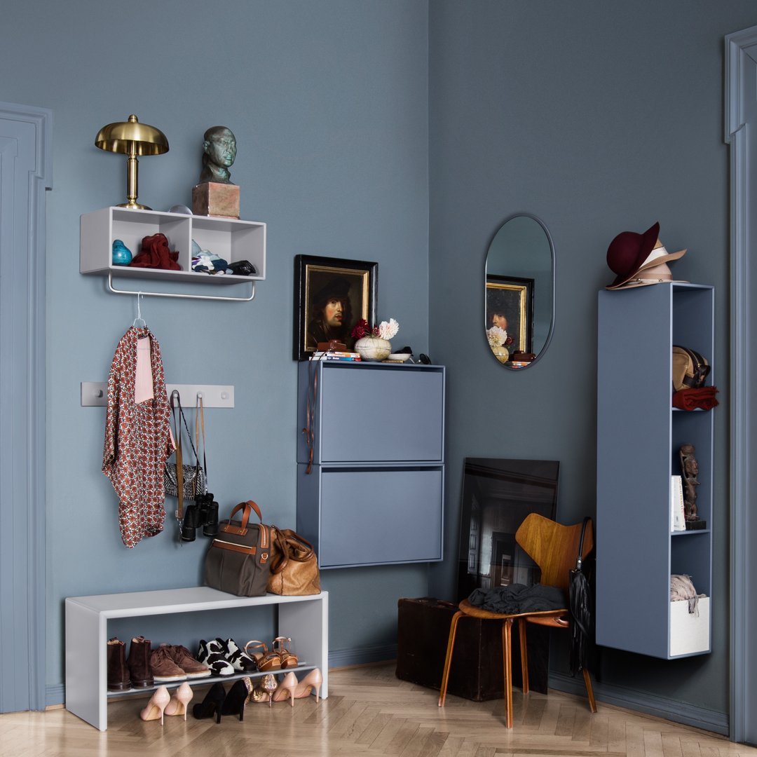 L'étagère à chapeaux COAT est idéale pour ranger vos manteaux dans l'entrée ou votre dressing. COAT est une version moderne de l'étagère à chapeaux, composée d'une armoire à deux compartiments et d'un portant à vêtements fixé en dessous. Idéale comme solution de rangement pour une petite entrée ou comme solution polyvalente pour une chambre, elle est disponible avec un rail de suspension dans les 40 coloris Montana.