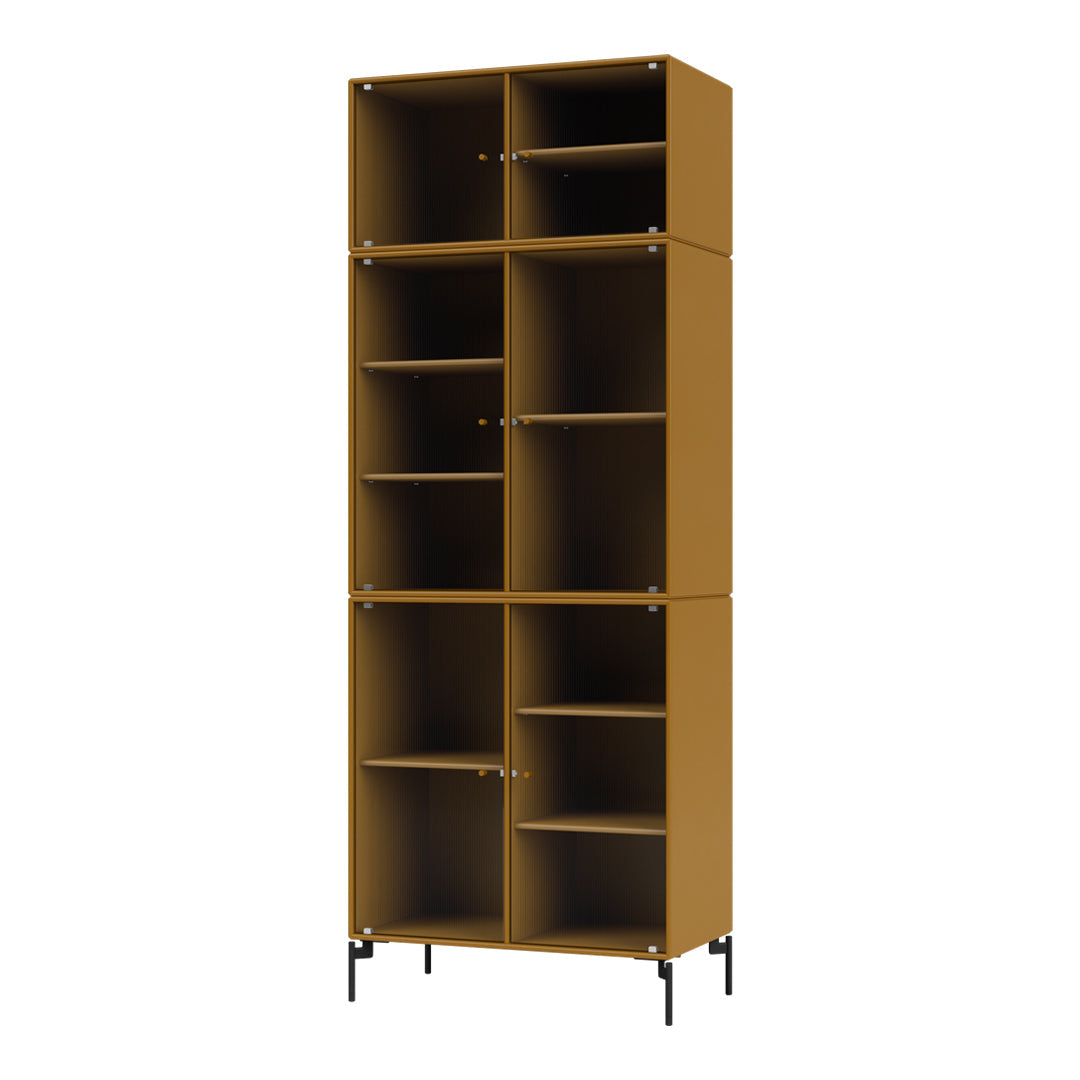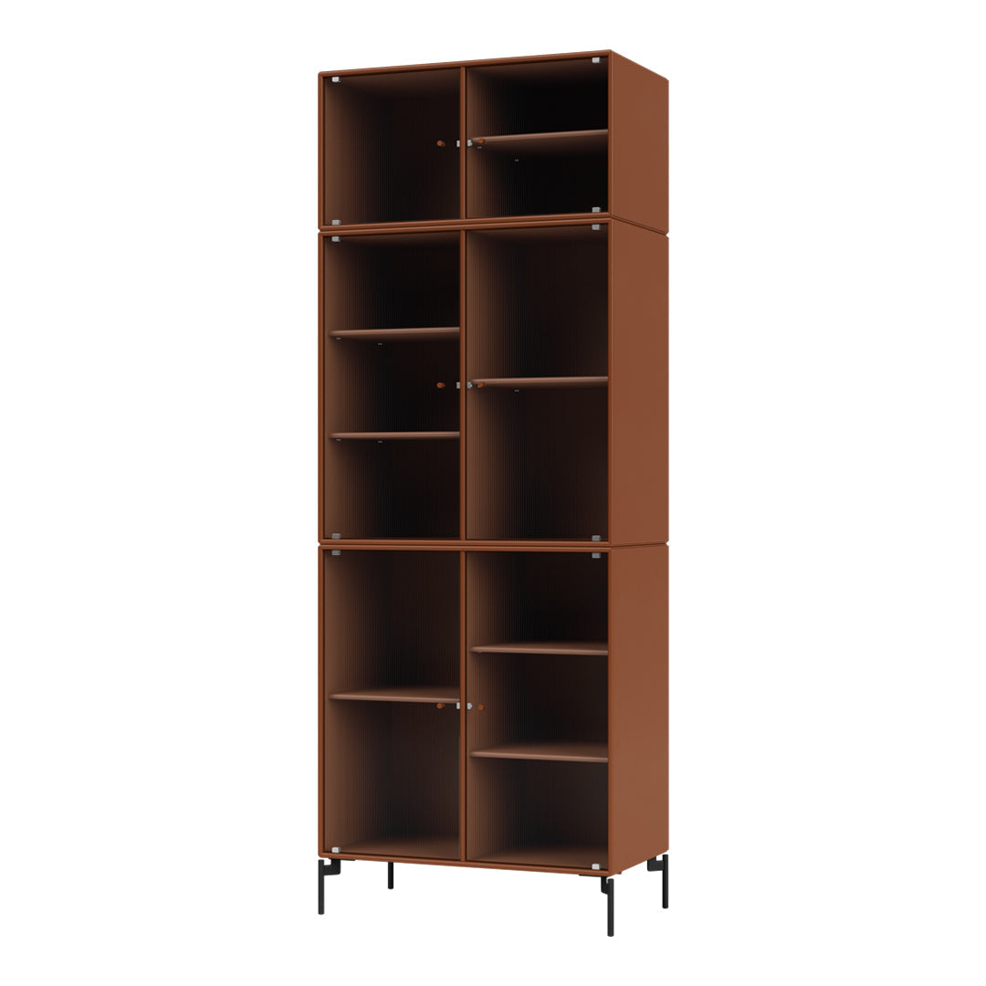 RIPPLE IV est une grande vitrine à 6 portes en verre ondulé. Disponible avec pieds, socle ou rails de suspension pour fixation murale, elle est idéale pour ranger la vaisselle dans la salle à manger ou la cuisine. Elle peut également accueillir des objets plus hauts comme des vases. Elle est dotée de 7 étagères amovibles avec supports qui facilitent l'agencement des étagères selon vos besoins.