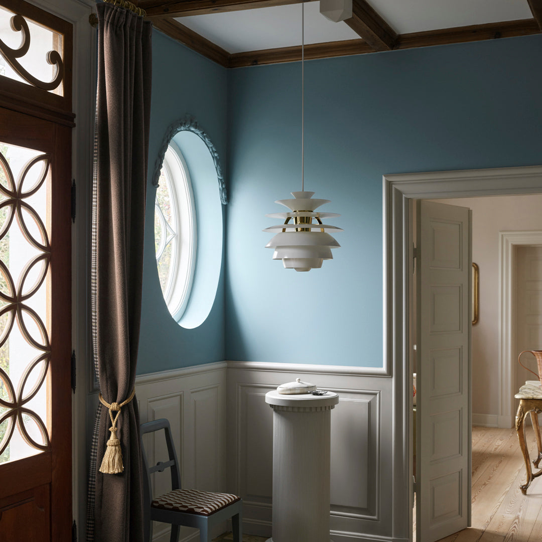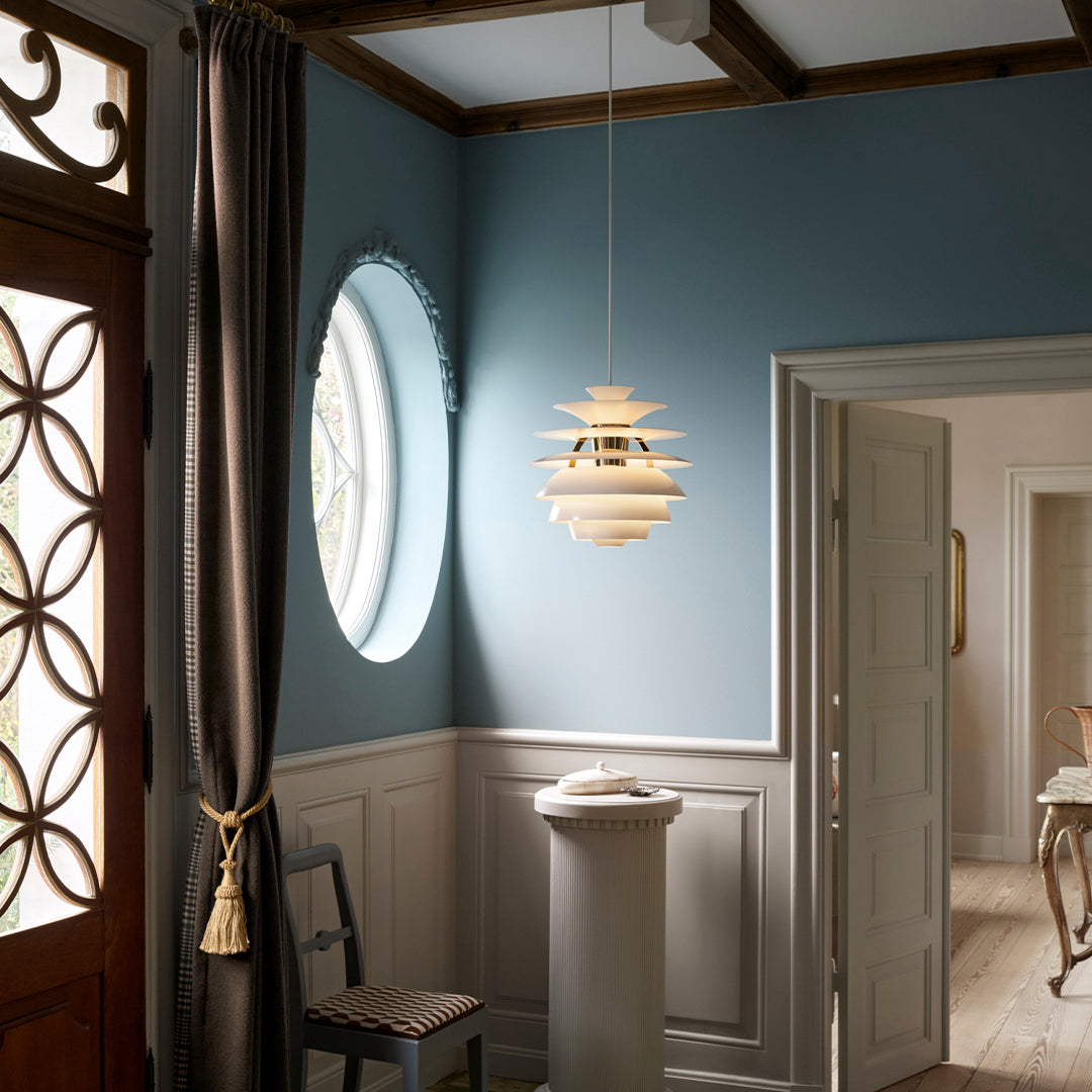 Poul Henningsen a conçu ses premiers luminaires en 1925/1926 pour une exposition à Paris. Il a collaboré avec Louis Poulsen jusqu'à sa mort en 1967. Tout au long de sa vie, PH s'est attaché à créer un éclairage non éblouissant, en orientant la lumière là où elle était le plus nécessaire et en créant des ombres douces grâce à l'utilisation d'ampoules à incandescence. Poul Henningsen a conçu Snowball en 1958, exposée avec PH 5 au Musée danois des Arts décoratifs. Cependant, Snowball n'a pas suscité d'attention particulière à cette occasion et n'a été relancée et fabriquée qu'à partir de 1983.