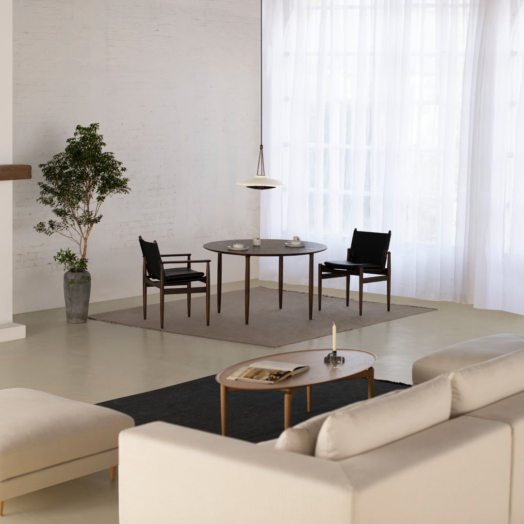 La chaise Safari historique présente une structure géométrique simple, robuste et presque naïve, avec des éléments rigides et souples pour plus de souplesse et de flexibilité. C'est en s'inspirant de ce vocabulaire que la chaise Journey en est l'interprétation moderne, mettant le confort, le style de vie et les comportements modernes au centre de l'attention. Nous souhaitions une chaise polyvalente, tant par son utilisation que par son esthétique, en alliant un style rustique à une approche plus raffinée et moderne. La douce arche sous le coussin d'assise sublime la silhouette masculine et affirmée de la chaise, lui conférant légèreté et sophistication. Le coussin d'assise plus épais et le dossier moelleux garantissent un confort optimal.