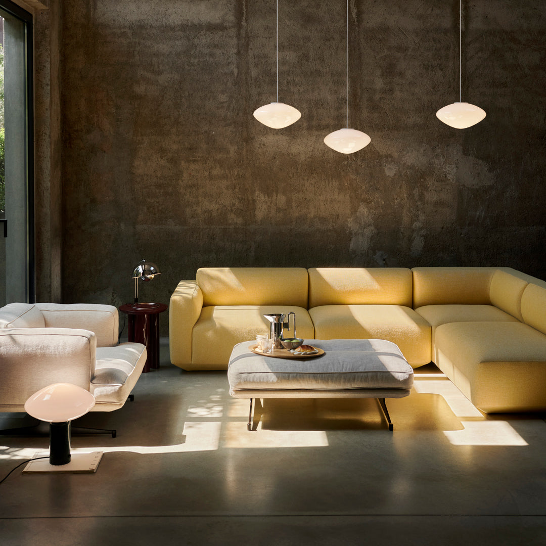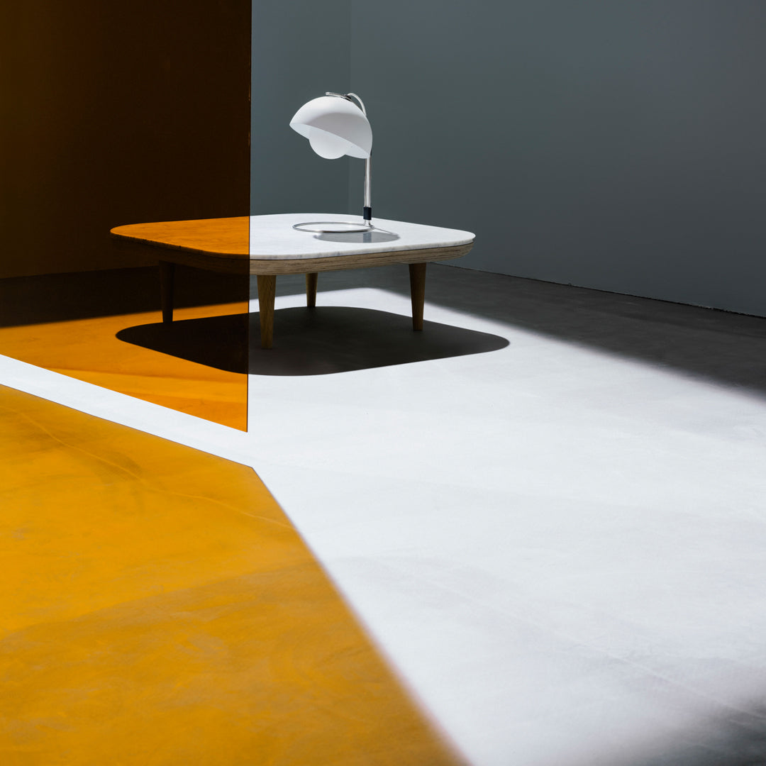 En 1968, les révoltes étudiantes à Paris, Rome et aux États-Unis bouleversaient les valeurs traditionnelles et rigides, inaugurant la génération du Flower Power, synonyme de paix, d'amour et d'harmonie. La même année, Stanley Kubrick imaginait l'avenir de l'année 2001 avec la chaise Verner Panton, et l'homme allait bientôt poser le pied sur la Lune. Dans le monde du design, une suspension colorée et ludique était accrochée dans les restaurants et les expositions, et très bientôt, dans tous les foyers. Le Flowerpot, avec ses deux sphères semi-circulaires se faisant face, a depuis longtemps prouvé sa qualité de design durable et est tout aussi emblématique de notre époque. Dans sa jeunesse, Panton partait souvent de Copenhague dans une étrange Volkswagen aménagée pour parcourir l'Europe, rendant visite à ses collègues designers pour partager idées et bons repas.