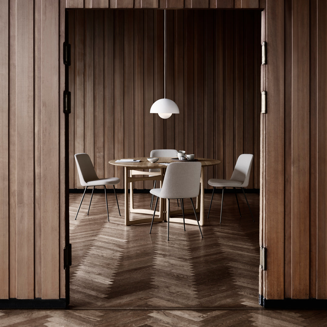 Élément incontournable de la collection &Tradition depuis 2010, le Flowerpot est désormais disponible dans une nouvelle version de taille moyenne, conçue pour s'intégrer parfaitement au-dessus d'une table à manger. Deux coloris supplémentaires, rouge-brun et bleu clair, ont également été ajoutés à la gamme.